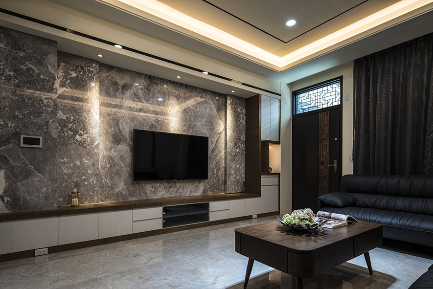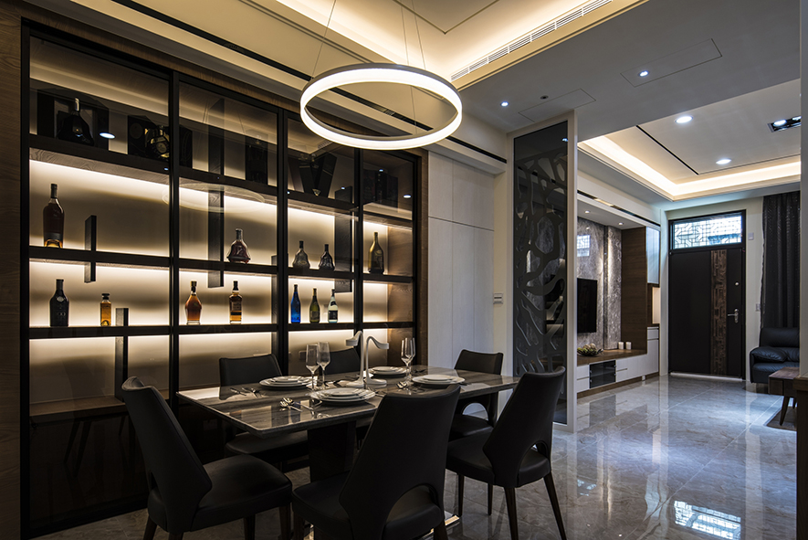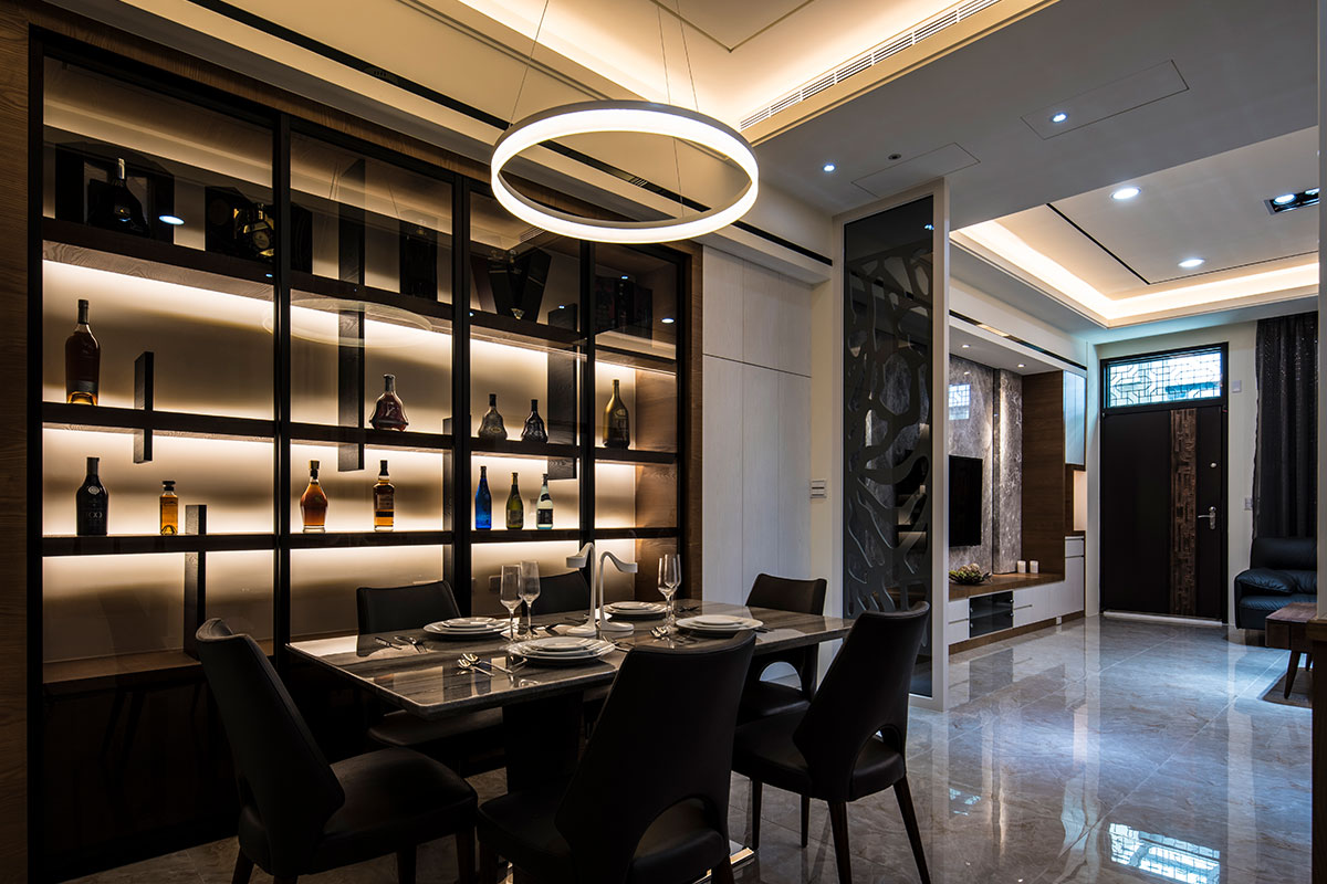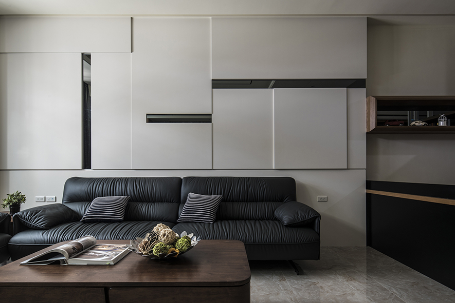 穩重厚實的墨色軟裝,與純白天壁形成鮮明對比,佐以俐落線條,勾勒出簡潔時尚的居家風景;隨著樓層轉變,個人私領域各自揮灑喜好的色彩,淺綠、鵝黃、天空藍,展露出每個家庭成員的獨特個性。