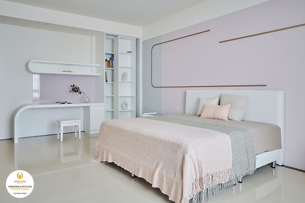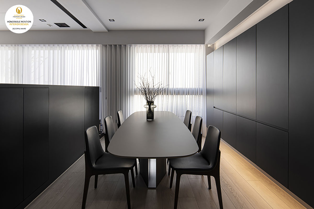 喬藝設計 王沁淩 設計總監 於作品《懷光深蘊》中,重新梳理毛胚屋格局,結合淺色木質調與個性十足的黑色鐵件、皮革,打造簡練而不失溫度的舒適家宅,另一件作品《藝・漫遊》以簡約風格為設計核心,規劃開放式的公領域,便於屋主接待親友,並於私領域融匯孩童喜好的色彩及元素,成就契合居者理想的專屬境地;兩件傑出作品皆奪得2022 OPAL倫敦傑出地產大獎「Honorable Mention」獎項,增添品牌榮光!