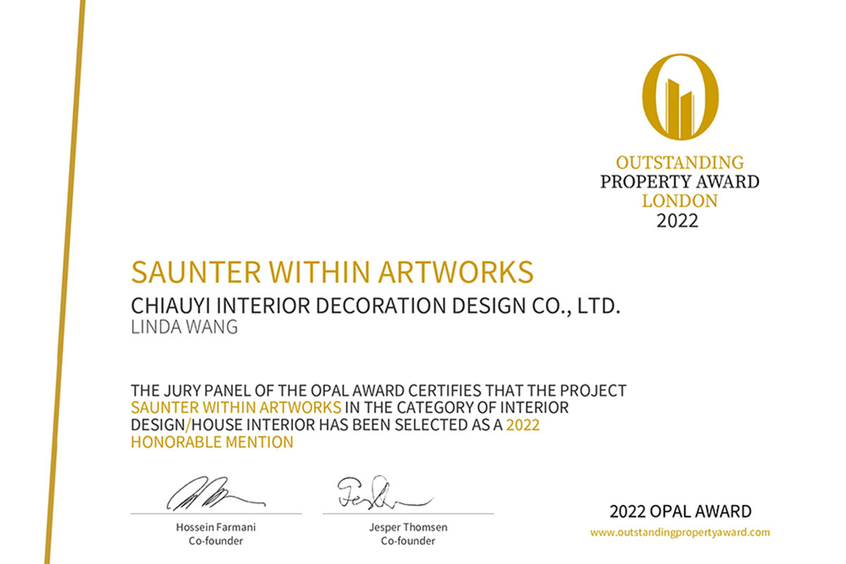 OUTSTANDING PROPERTY AWARD LONDON,OPAL(英國倫敦傑出地產大獎)由全球知名企業集團Farmani Group組織,並以招攬全球最佳建築師、室內設計師與房地產開發商為目標,在創造異業菁英聯合平台的同時,找尋各地最富創造力、革新感、社會影響力與永續性的設計方案。參與者有機會替自己最新穎的企劃,博得國際能見度,並且和產業的先驅及專業人士進行交流。