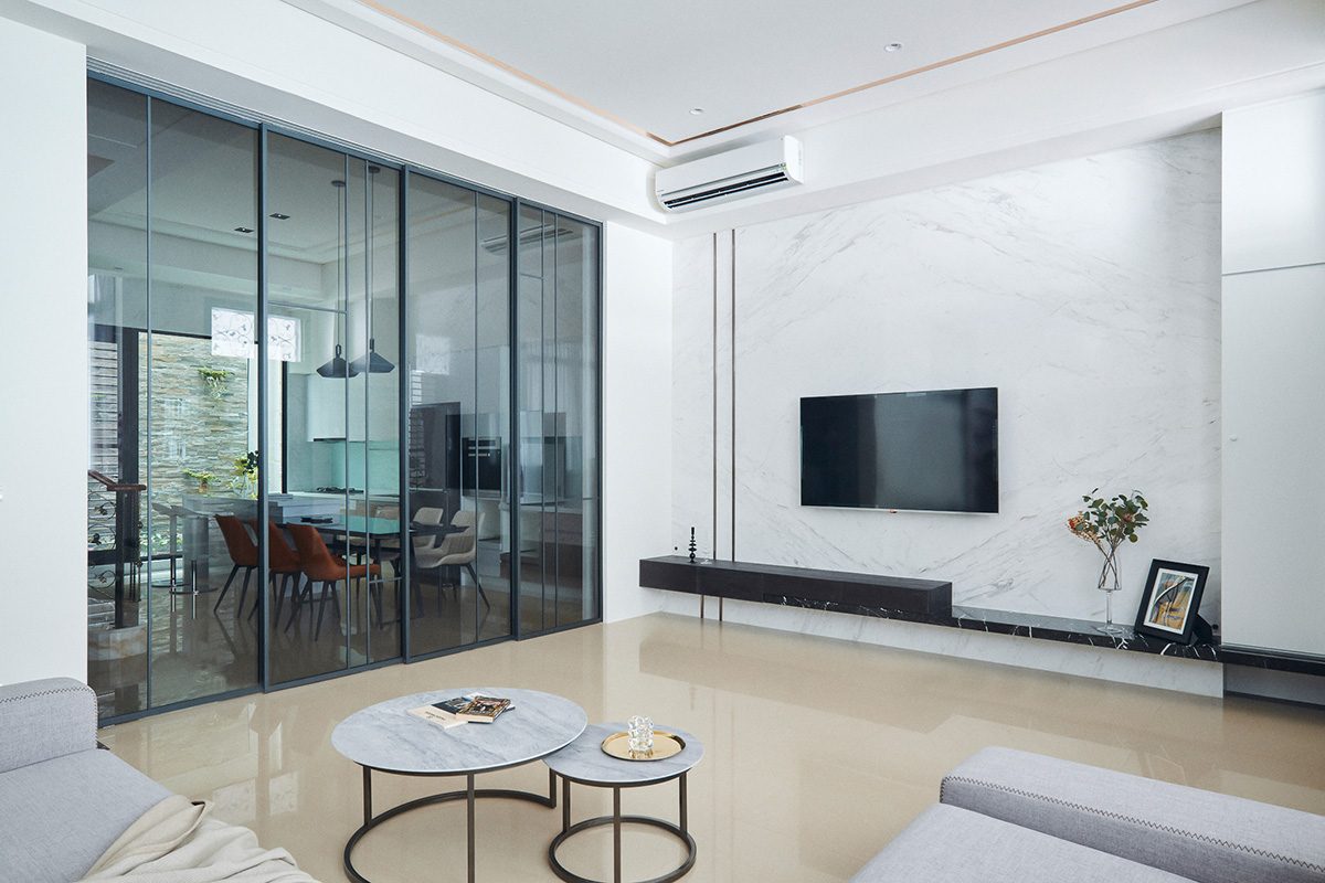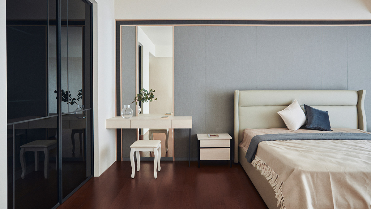 沉穩寧靜的灰階,相偕溫潤的莫蘭迪色系,於眼前輕施一片柔和淡彩,既呈現繽紛童趣的畫面,亦不失優雅調性,搭襯天壁間閃爍的鍍鈦金屬光澤,點亮迷人的時尚居家風景。